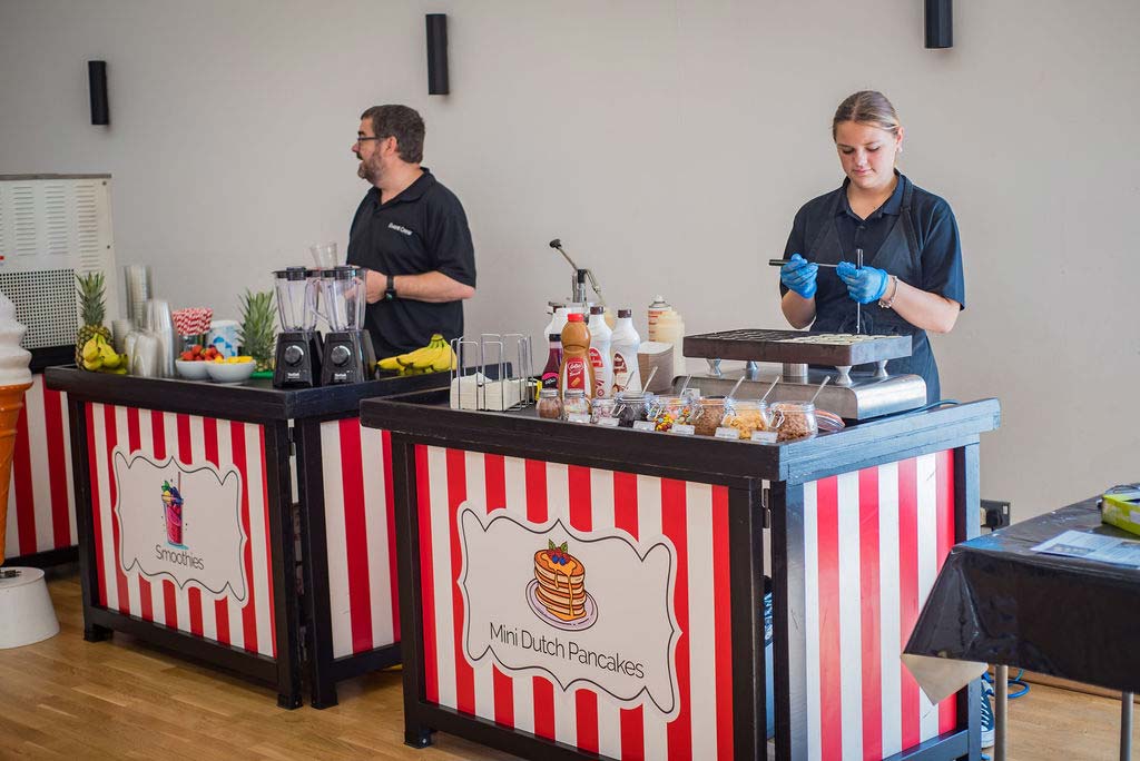 If you’re looking for a unique addition to your next event, then our mini Dutch pancake stand hire is the perfect solution. Our pancake stand is compact, so it can fit into most venues, and comes with all the equipment you need to make delicious mini Dutch pancakes. We use a traditional Dutch poffertjes pancake mix, so that every pancake is light, golden and fluffy with a wide selection of delicious toppings.